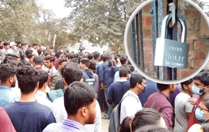 জাহাঙ্গীরনগর বিশ্ববিদ্যালয়ের শিক্ষার্থীরা হলের ফটকের তালা ভেঙে দেয়ার পর নতুন করে তালা দিয়েছে বিশ্ববিদ্যালয় প্রশাসন। শনিবার বিকেলে বিশ্ববিদ্যালয়ের প্রক্টরিয়াল বডির সদস্যরা হলের ফটক নতুন করে তালাবদ্ধ করেন।