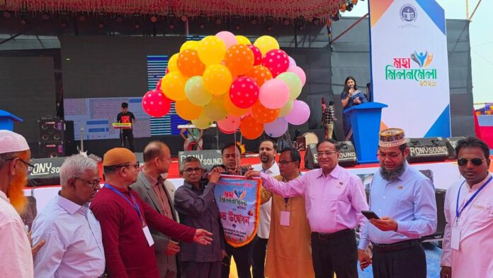 সকালে কোরআন তেলোয়াত, গীতা পাঠ এর মধ্য দিয়ে সূচনা হয় আয়োজনের। এর পরপরই জাতীয় সঙ্গীত ও বেলুন উড়িয়ে মহা মিলন মেলার উদ্বোধন করা হয়।