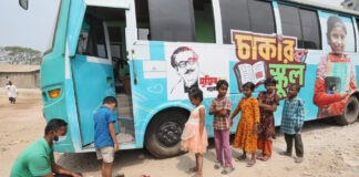 বাসের ভেতর সুবিধাবঞ্চিত শিশুদের স্কুল